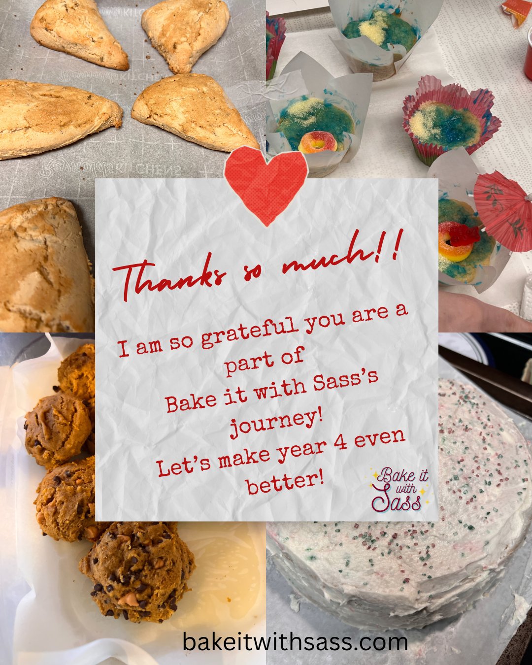Last weekend's anniversary party was so much fun! We laughed, danced, and mixed our hearts out! Thank you for being part of the sassy baker crew for the last three years. Here is to year 4!